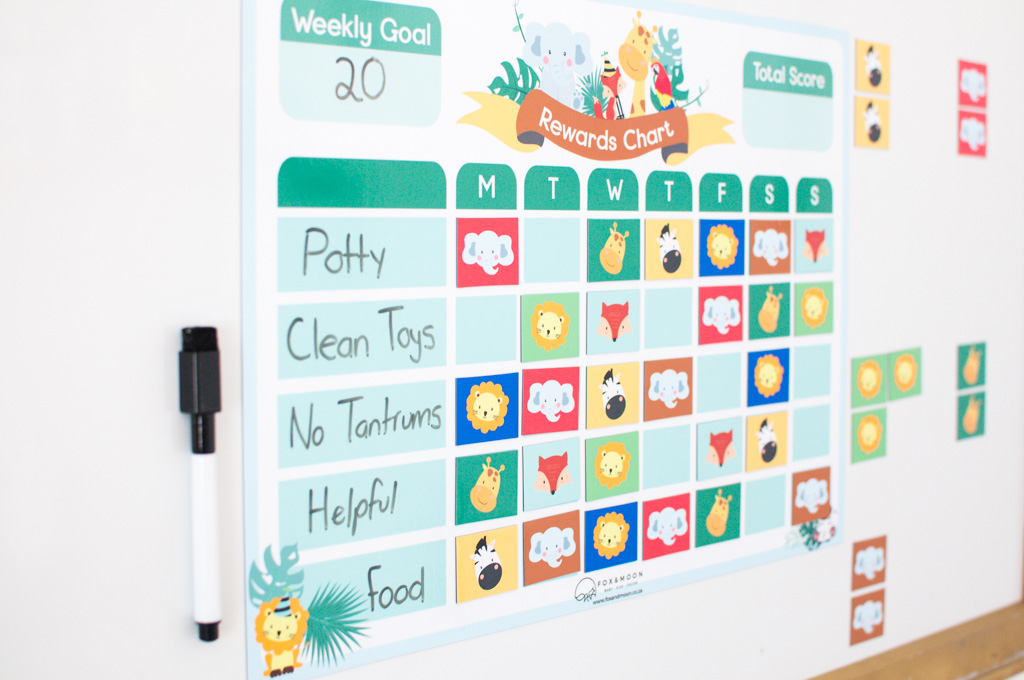 Studies show children respond well to positive reinforcement, this where this reward chart is brilliant. Fun and colourful and allows the child to choose which animal magnet it wants to place on the reward chart when a job is completed!